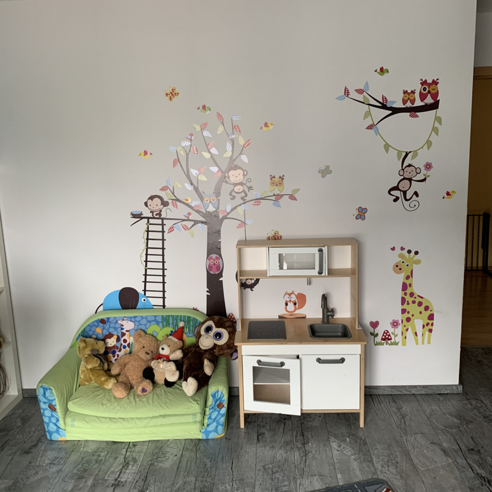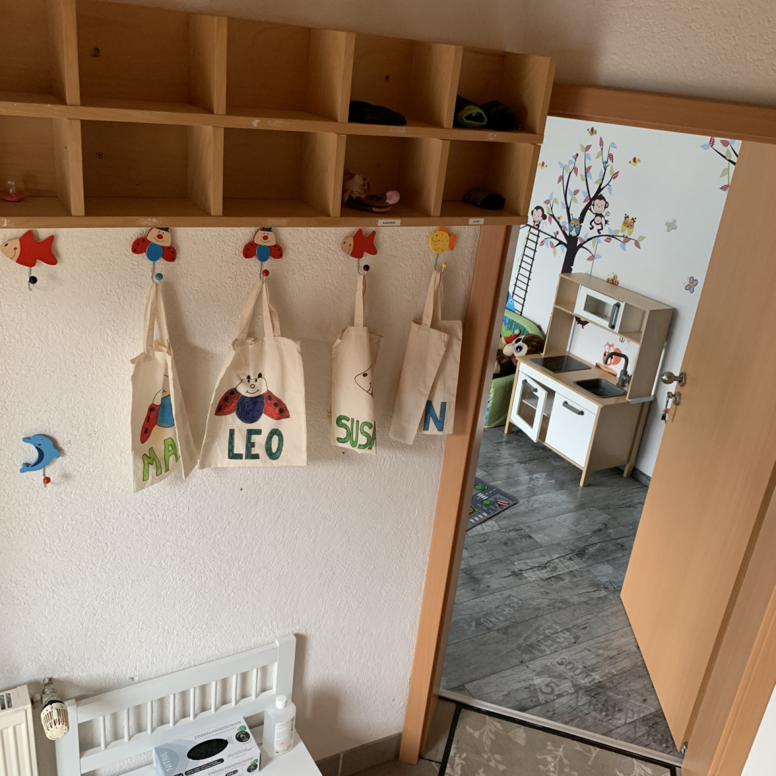 Die Räume sind an die Bedürfnisse der Kinder angepasst. Das anliegenden Badezimmer bietet die Möglichkeit der Sauberkeitserziehung. Im Schlafbereich können sich die Kinder ausruhen und Kraft für neue Abenteuer tanken. In der geräumigen Küche kümmere ich mich um die ausgewogene Versorgung der Gruppe. Durch verschiedene eigene Bereiche schaffe ich zudem kleine Inseln zum Basteln, Spielen und Toben. Es versteht sich von selbst, dass in den Räumen nicht geraucht wird.